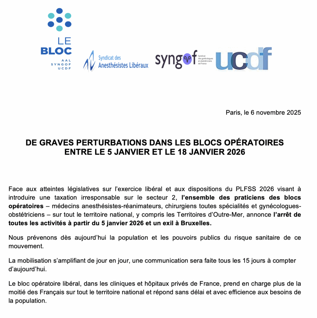 Communiqué LE BLOC : De graves perturbations dans les blocs opératoires entre le 5 janvier et le 18 janvier 2026