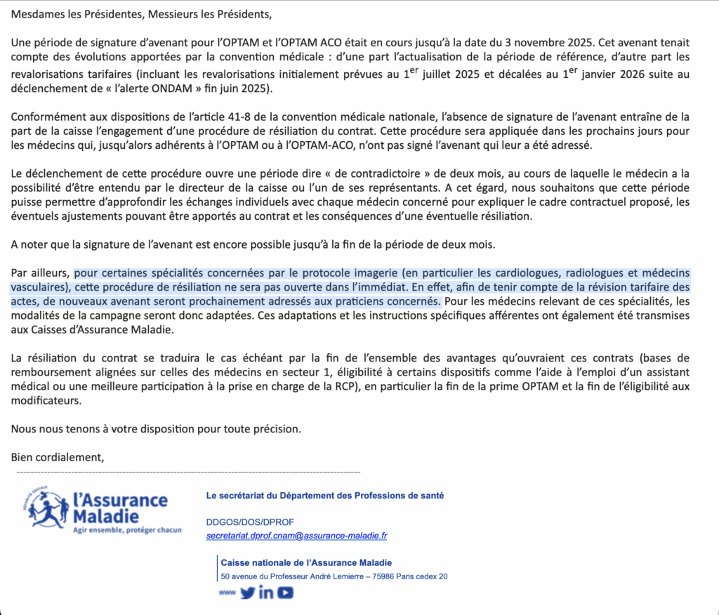 La période dite “contradictoire” de 2 mois constitue une tentative de freiner le mouvement de sortie de l’option. La CNAM évitera de communiquer avant janvier.