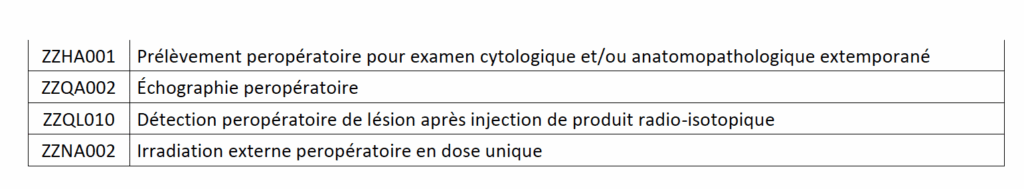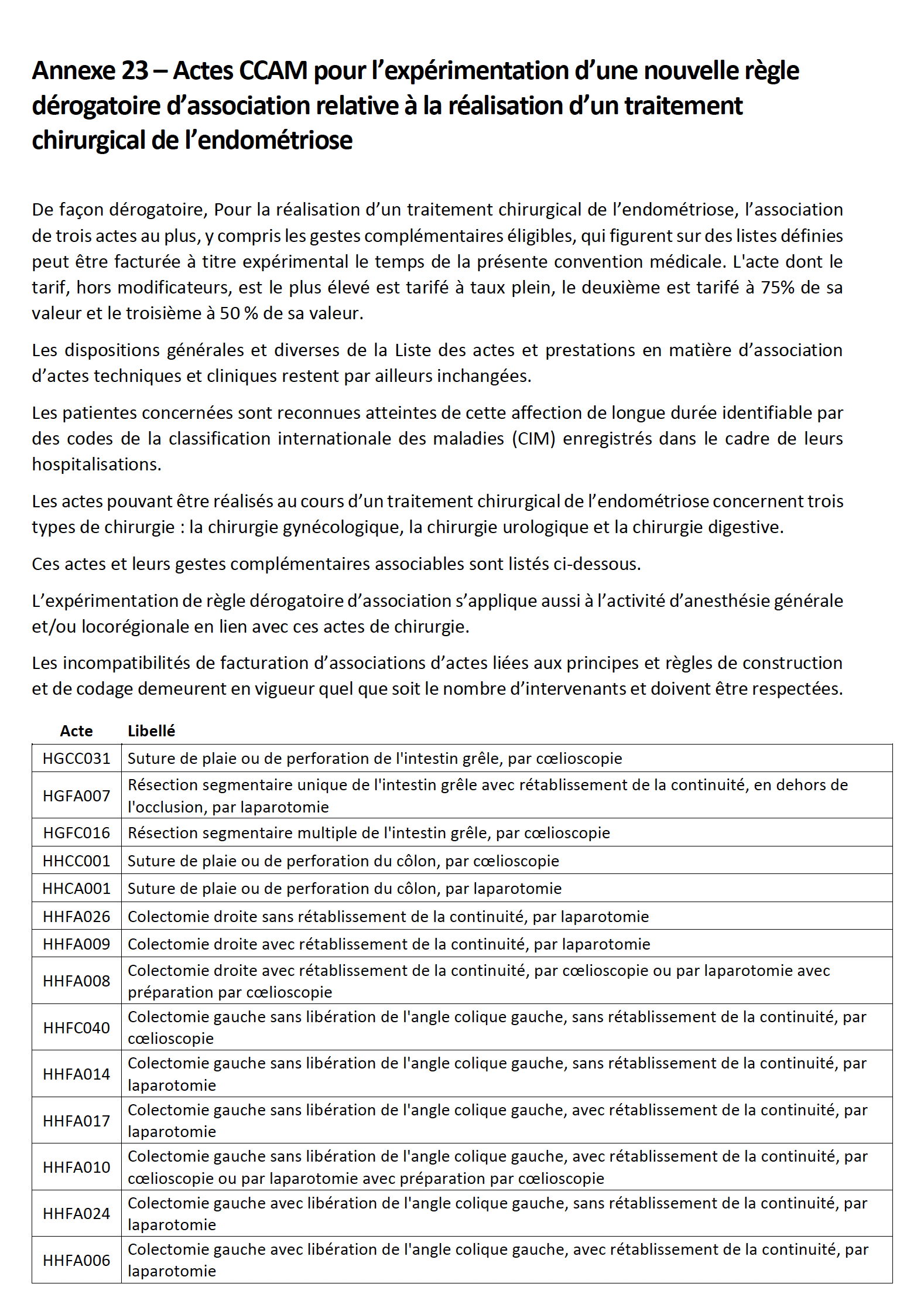 Nomenclature : actes Endométriose pouvant être cotés en 3° position